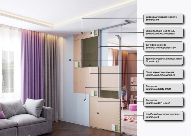 Самая популярная звукоизоляционная перегородка в линейке решений SoundGuard. Защищает от шума бытовых приборов, детского плача, громкой музыки, лая собак, музыкальных инструментов. Применяется в многоквартирных домах комфорт- и бизнес-класса, гостиницах, загородных домах, кабинетах, переговорных комнатах, на производстве, и.т.д.