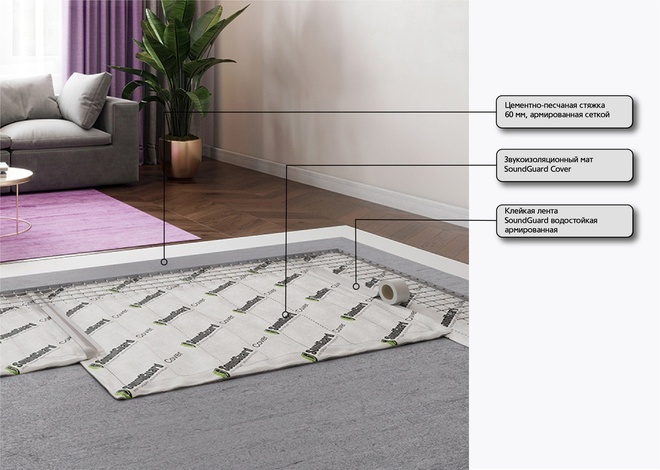 Самая популярная система звукоизоляции пола под стяжку, в линейке решений SoundGuard, сбалансированная по соотношению «толщина-эффективность». Качественно изолирует звуки бытовых приборов, плач ребёнка, лай собак, шаги, падение и передвижение предметов. Применяется в многоквартирных домах комфорт- и бизнес-класса, на крупных государственных и коммерческих объектах, в загородных домах, медучреждениях, отелях, детских садах и т.д.
